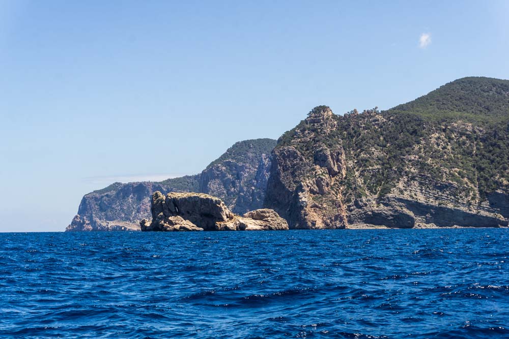 Die Navigation ist hier an der Ostküste Ibizas ziemlich einfach, da die Küste Ibizas fast überall steil abfällt, sodass Untiefen