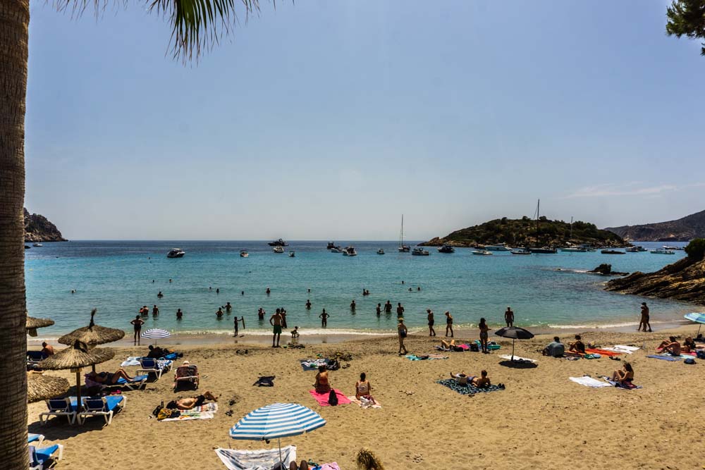 einen kurzen Besuch abzustatten. Die knapp zwei Seemeilen südlich von Santa Eulalia gelegene Cala ist eine echte Bilderbuchbucht.
