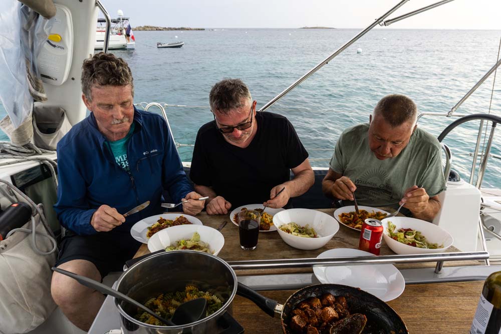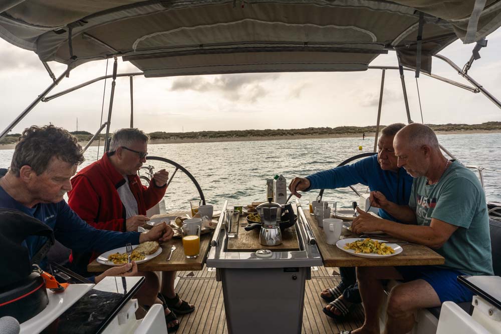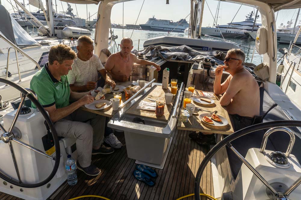 So gegen acht waren wir wieder vollzählig im Cockpit zum gemeinsamen Frühstück auf hoher See versammelt. Wir genossen in vollen Zügen die ruhige Überfahrt und konnten gegen