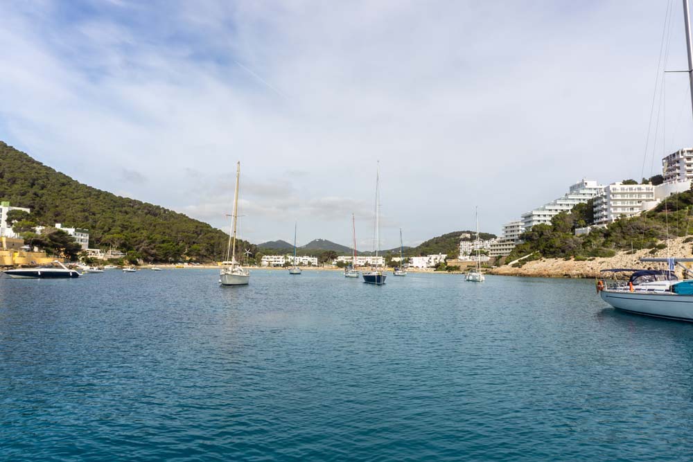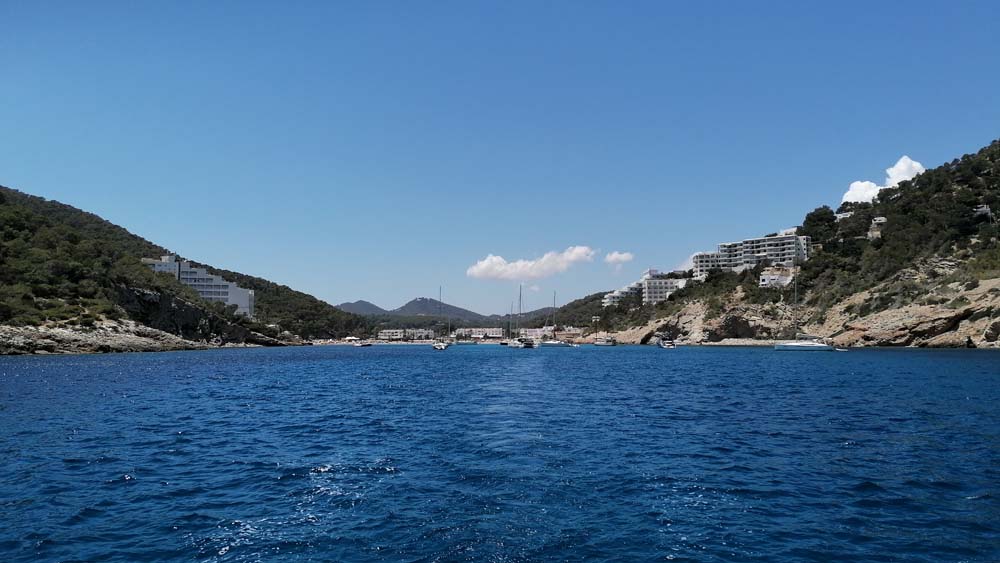 Cala Portinatx. Da auch heute wieder der Wind streikte, mussten wir die ganze Strecke motoren.