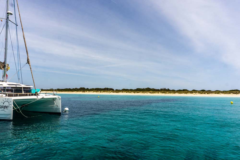 einen hüfttiefen und schmalen Wasserpass von Formentera getrennt und äussert beliebt und somit vor allem in der Hochsaison