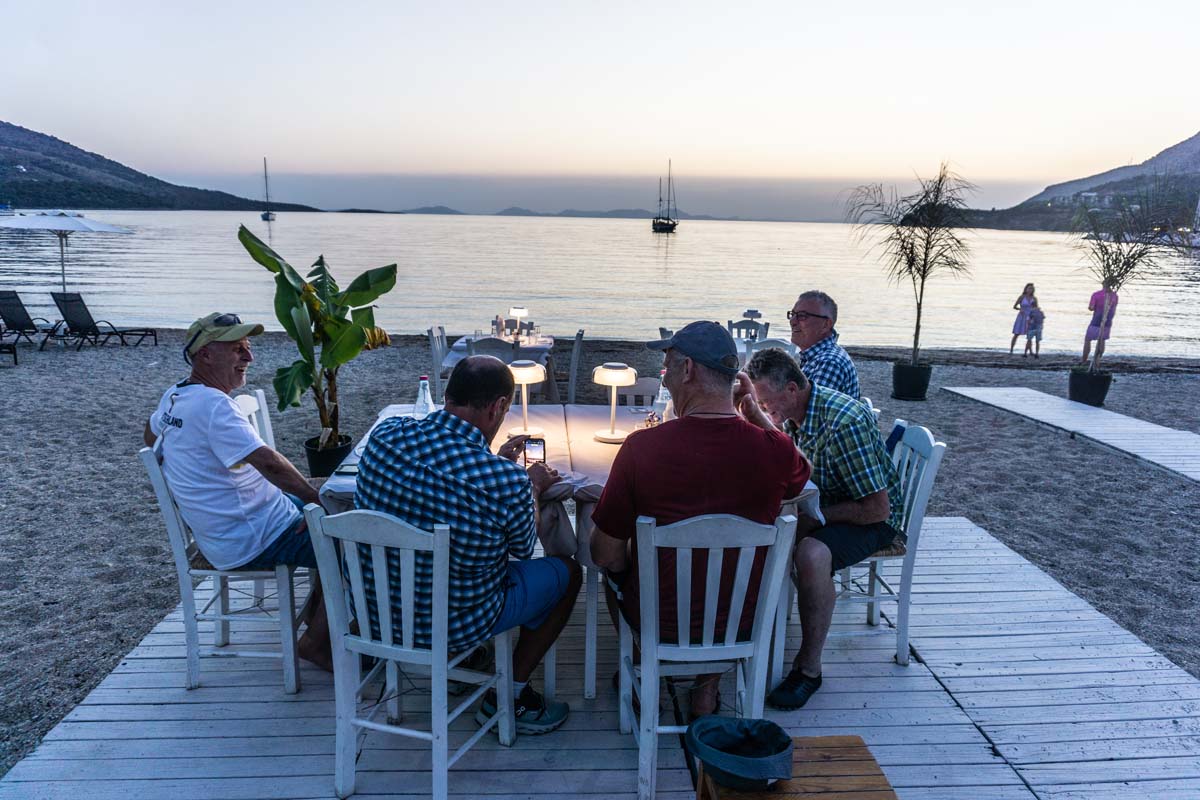 Wir erlebten an Bord einen ausgelassenen Abend bei Wein und Mythos-Bier mit einem traumhaften Sonnenuntergang, alles in allem ein rundum würdiger Abschluss.