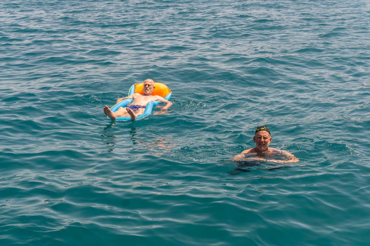 Nach einem ausgiebigen Bad im 22° warmen und klarem Wasser sowie einem erfrischenden Kaffee Fredo in der angrenzenden Taverne,