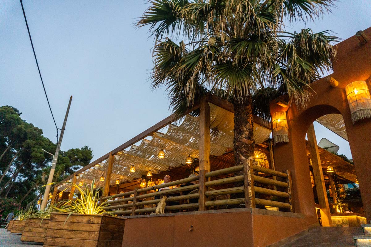 An Land gibt es zwei Restaurants, eines hinter dem Strand und eines etwas weiter oben auf dem Hügel von wo man einen sensationellen Ausblick hat.