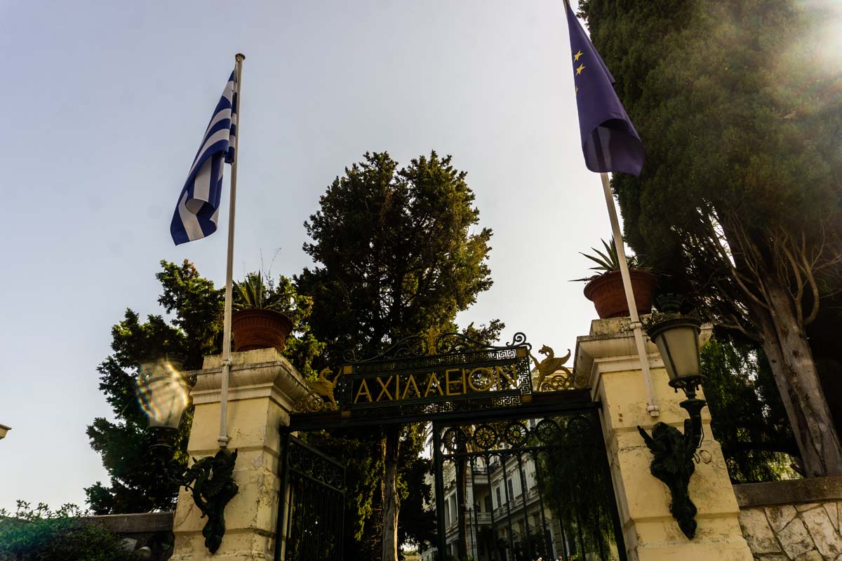 Während unserem humanistischen Diskurs war es mittlerweile mit der beschaulichen Ruhe am Eingang des Achilleion vorbei, als,