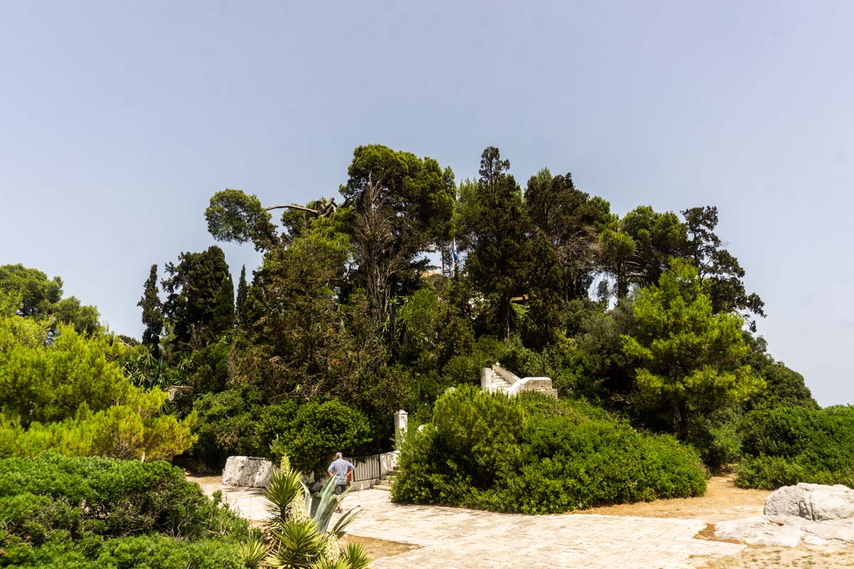 Der Weg führte uns durch einen bewaldeten Weg, am Gallikos Molos Beach vorbei zur hübschen Bucht mit Blick auf die Klosterruine auf einer kleinen Anhöhe.