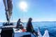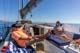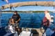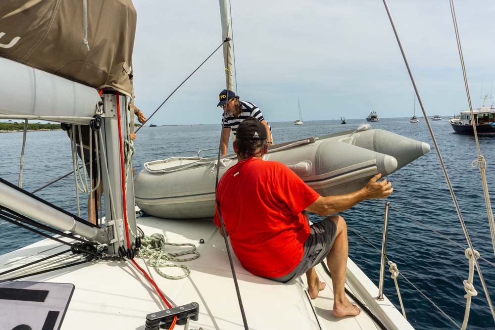 Während wir mit Arbeiten wie Dingi klar machen, Badeleiter ausklappen, erstes Ankerbier leeren und und und,