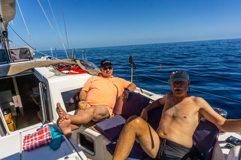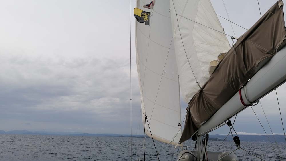 Für die nächsten Stunden nutzen wir den tollen Segelwind. Nur ab und an mussten wir die Segel etwas nachtrimmen und kamen gut vorwärts, teilweise mit mehr als 7 Knoten.