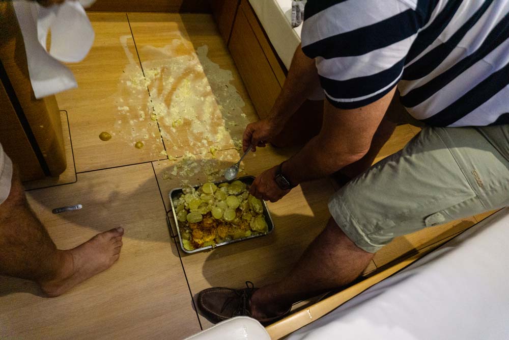 Während Stefan und Fritz in der Capitainerie die Formalitäten erledigten, Jörg und ich das Boot klar machten, hatte Georg für uns leckere Merguez gebruzelt,