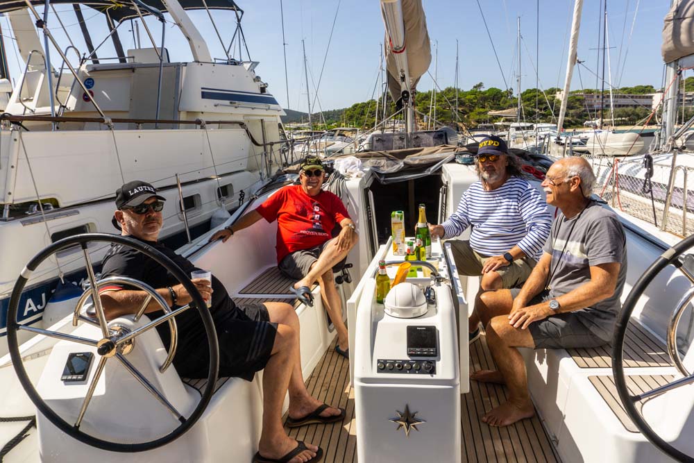 Nach dem Fotoshooting genoss noch jeder ein kühles Kronenbourg vor dieser Traumkulisse, bevor es Anker auf hies und wir in die nächste Traumbucht wechselten.
