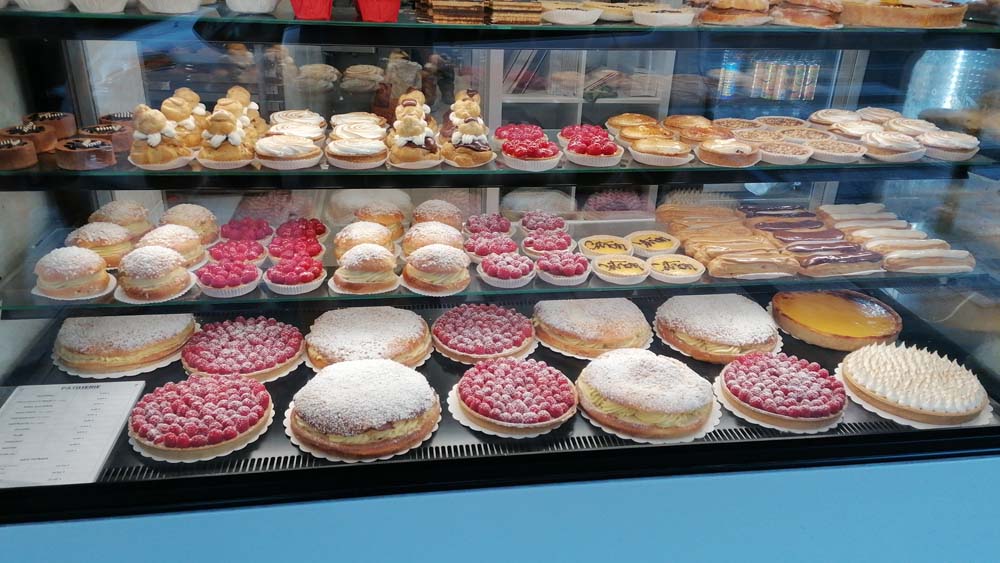 Hungergefühl breit und immer dem Duft frischer Croissants folgend, fanden wir irgendwo eine Boulangerie mit sehr vielen Leckereien.