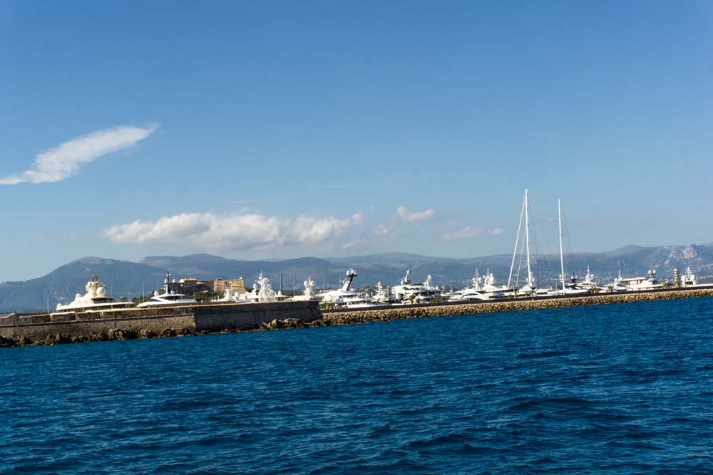 Direkt hinter dem Cap d'Antibes vorbei, auf dessen Hügel teure Villen mit weitläufigen Parks stehen, sahen wir schon direkt die Altstadt von Antibes vor