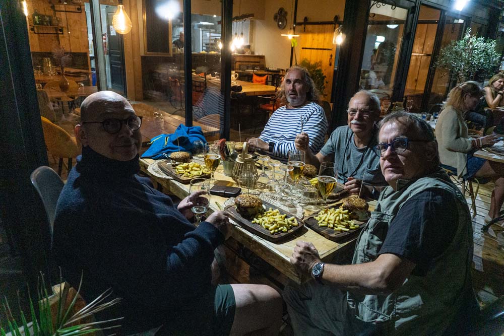 Nach gut 15 Minuten trafen wir uns wieder mit Georg und Stefan, die während unseres Kurzausfluges ein nettes Lokal mit Blick auf den Hafen inklusivem phantastischen Sonnenuntergang